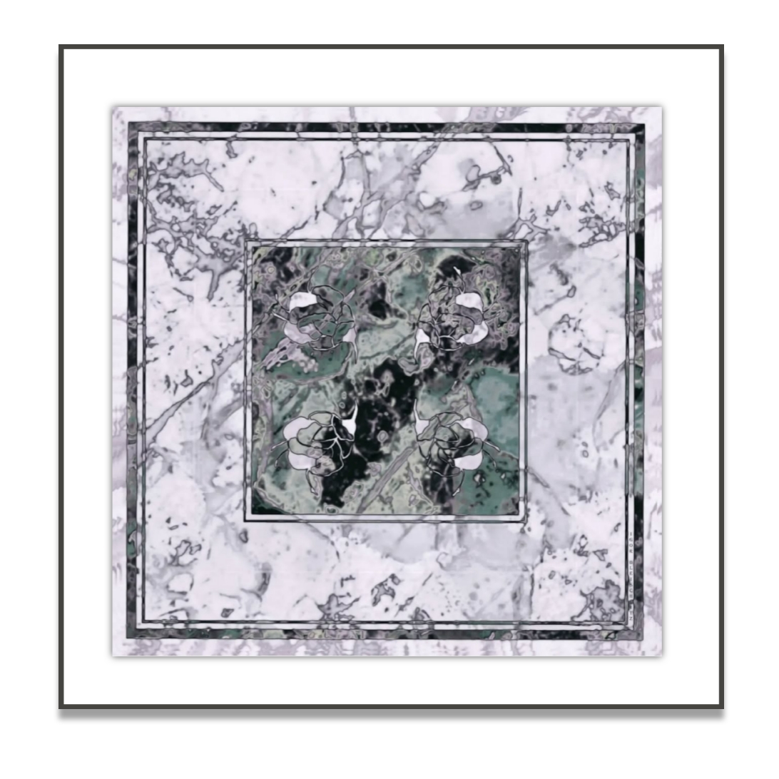 Ein Seidentuch mit Marmor- und Blumenmotiv ist ein wahrhaft elegantes Accessoire, das sowohl Stil als auch Kunstfertigkeit verkörpert. Die Kombination aus dem kühlen, zeitlosen Marmor-Design und den lebendigen, blühenden Motiven schafft einen faszinierenden Kontrast, der sowohl modern als auch klassisch wirkt.